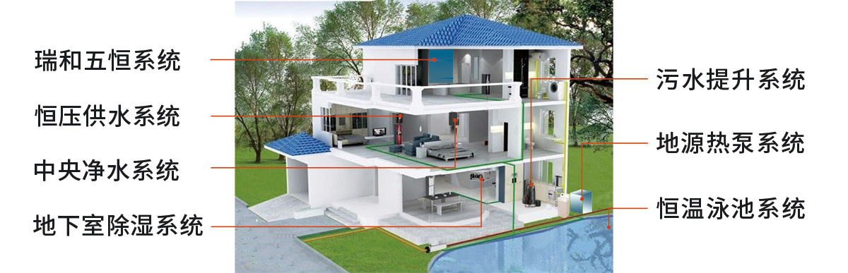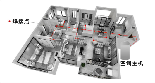 別墅一般3層以上,主臥等重要區域多位于頂樓,離主機遠,負荷大,普通工藝導致頂樓冷暖效果差,瑞和采用同程工藝,3根主管,優化空調水流量,保障每層冷暖效果一樣。